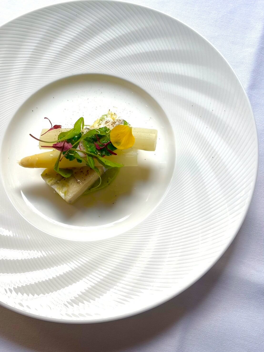 ホワイトアスパラガス、新玉ねぎ、グリーンピースなど、春野菜をふんだんに取り入れたコースをご用意いたしました。